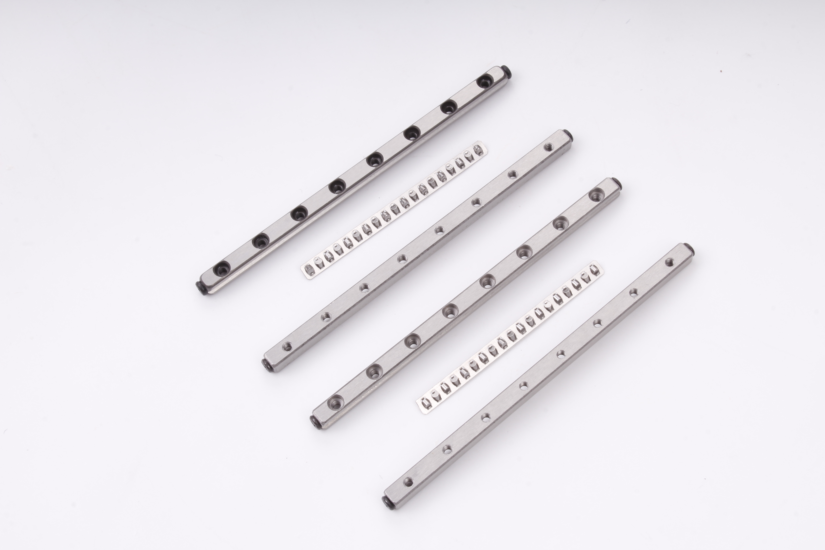 滚子交叉导轨主要由导轨本体、滚子保持架、交叉排列的滚子组成。导轨本体通常采用高强度合金钢材,真空全硬淬火工艺,确保承载能力与耐磨性。滚子保持架采用工程塑料或金属材质,内部均匀分布滚子安装孔,且滚子以交叉方式错位排列 —— 相邻滚子滚动方向呈 90° 垂直,这种设计使导轨在 X、Y 双向均能承受载荷,打破了传统直线导轨单向承载的局限。