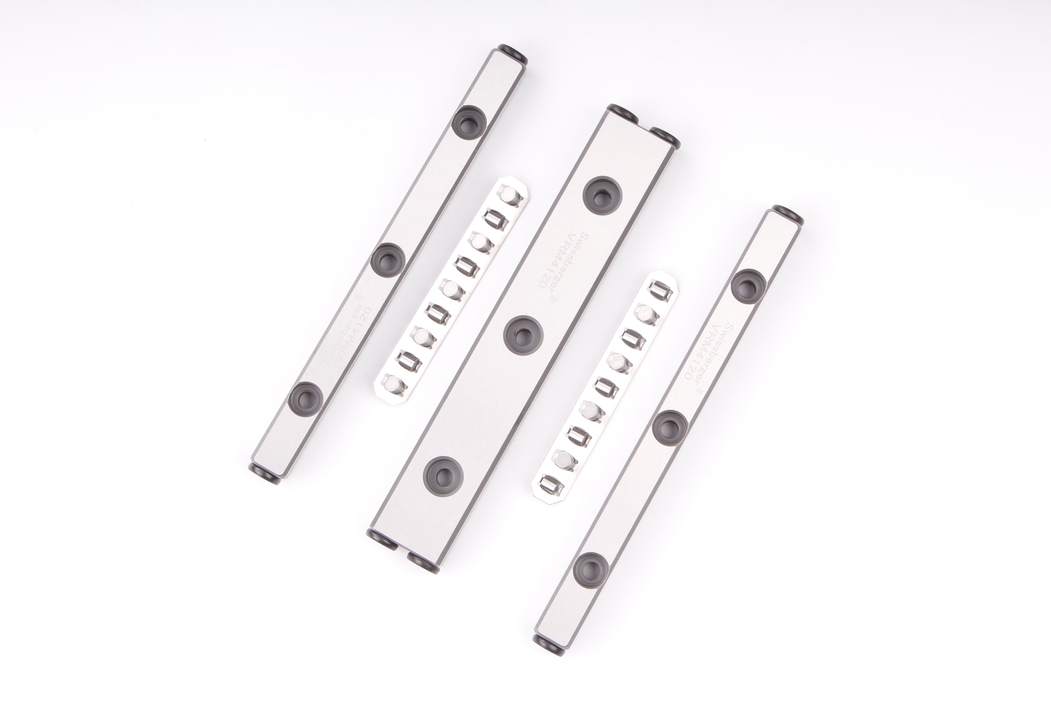 交叉滚子滚柱导轨的结构设计十分精妙。它主要由导轨、圆柱滚子和保持架构成。导轨本体上精心加工出相互垂直的 V 形滚道,圆柱滚子在保持架的精确引导下,以交叉方式排列于滚道之间。导轨本体通常采用高强度合金钢制造,并经过严格的热处理和精密磨削工艺,确保滚道的高精度和高硬度,提升导轨的耐磨性和使用寿命。这种巧妙布局使得滚子与滚道之间形成点接触,大大提高了接触刚度和承载能力。同时,保持架不仅确保滚子的精准定位,还能有效防止滚子之间的相互摩擦和碰撞,保证了导轨运行的平稳性。
